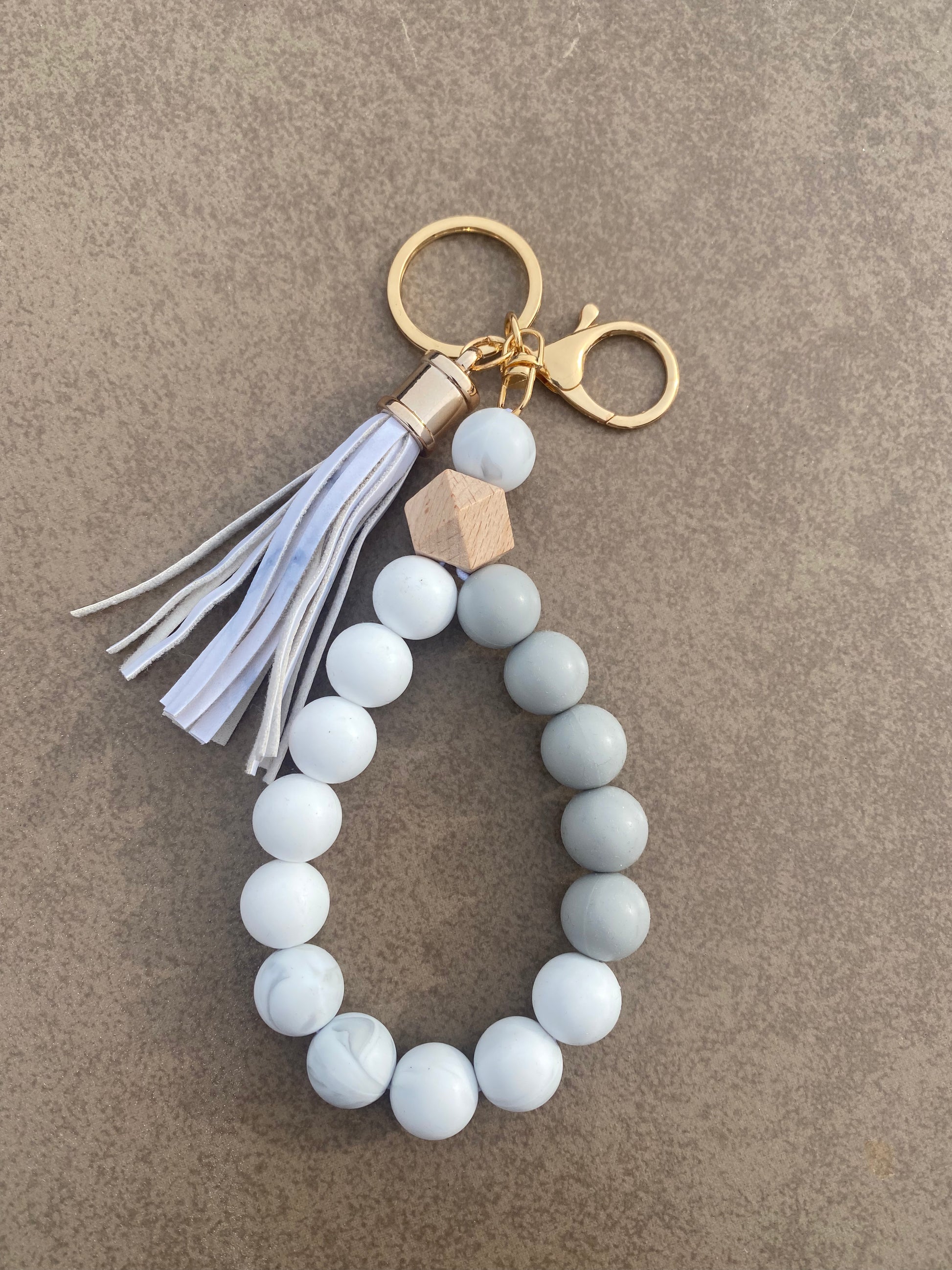 These super cute keychains have silicone beads on a nylon band.
